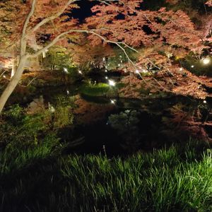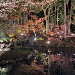 庭園のライトアップ歯、大きな池に映るもみじが映り込み幻想的でした。ほんとうによかったです♡♡