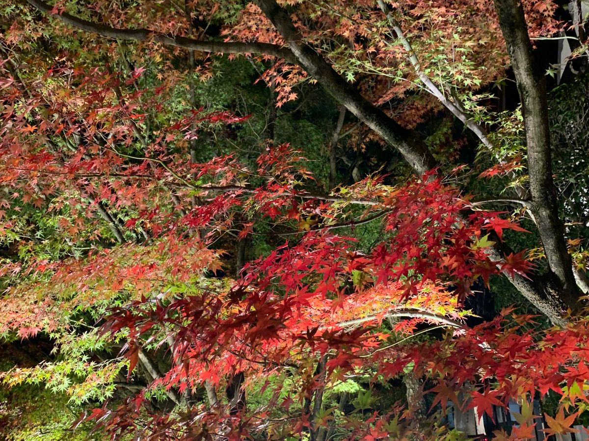 12月なので紅葉のシーズンは終わりかなと思っていましたが、バスガイドさんもびっくりの見事な色付きでした。ライトアップされた紅葉をゆっくり鑑賞し、お食事を頂いた後はお楽しみの舞子さんの登場。初めて近くで舞子さんを見ましたがとても愛らしい方でした。綺麗な紅葉と舞を一度に鑑賞できて満足です。バスガイドさんもお話し上手で楽しかったです!