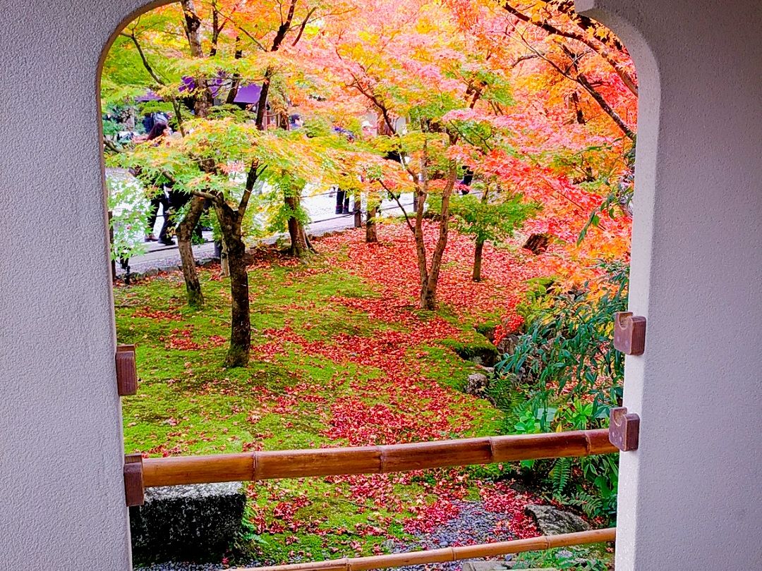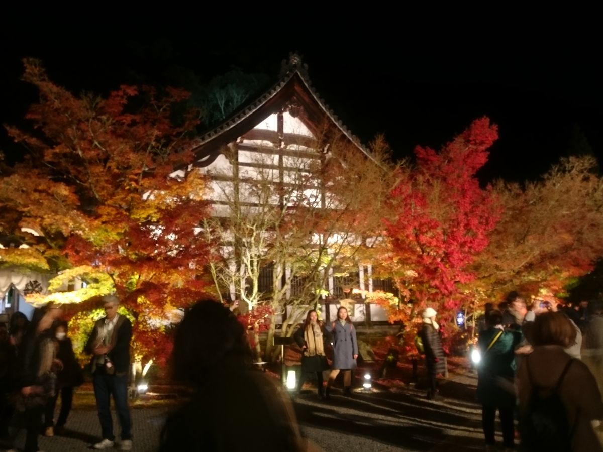 まず夕食をとってから、紅葉を見に行くという流れでした。お料理もとても美味しく、繊細であでやかな盛り付けに京都に来たなあという感じがしました。そして肝心の紅葉は息をのむような美しさで、皆さんもスマホで写真をおさめるのに必死(もちろん私も!)でした。私は高齢の母をつれていたので、事前に予約していて良かったと思いました。