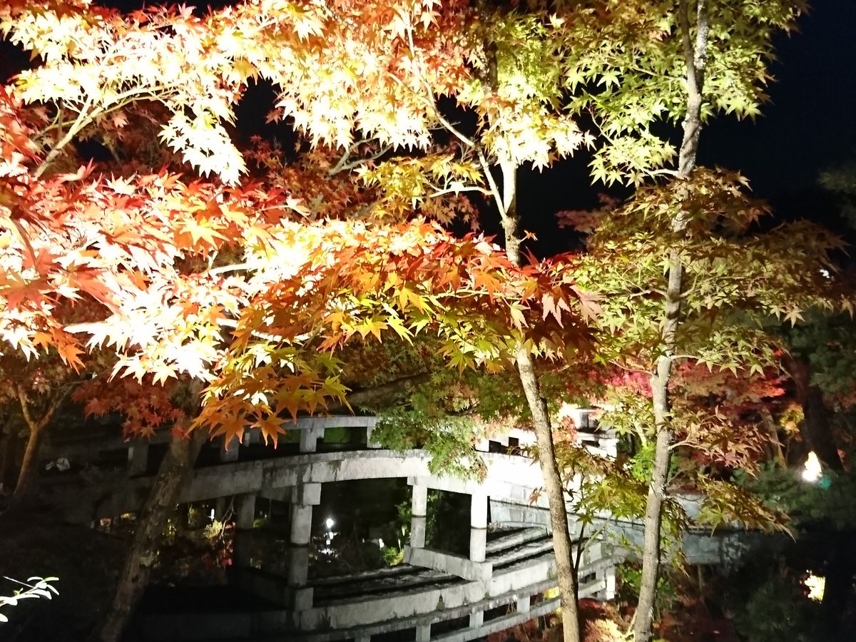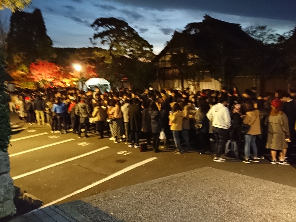 ライトアップだけでなく昼間も見たい人には絶対おすすめのコースですね。退所時間ぎりぎりの5時まで粘って外に出ようとしたらライトアップの券売所の前は二重三重の列でした。列の整理をなさっていた御坊様とちょっとお話ししましたが、お食事の予約がしてあると言ったらそれが一番利口とおっしゃってました。
