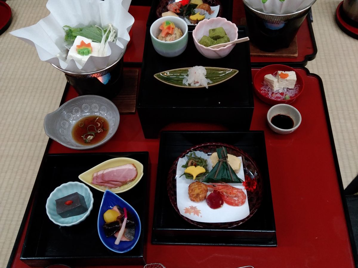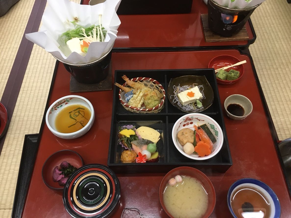 他のクチコミの通り、受付から係の方の後ろに続いてあっという間に食事場所に案内されそこで永観堂の入場券をもらい「食事が終わったらあの門から入ってください」と説明され、席に案内されました。食事は湯豆腐付きの三段重になった会席料理でした。味は悪くなく、いたって普通といったところです。