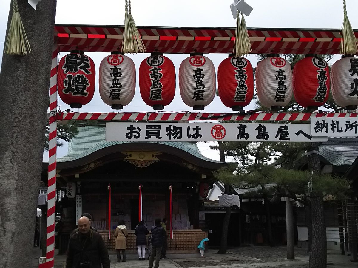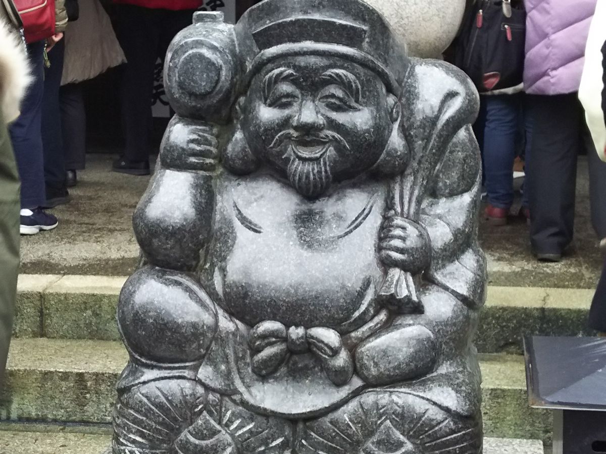 恵比須神社の鳥居にかけられている恵比須様に