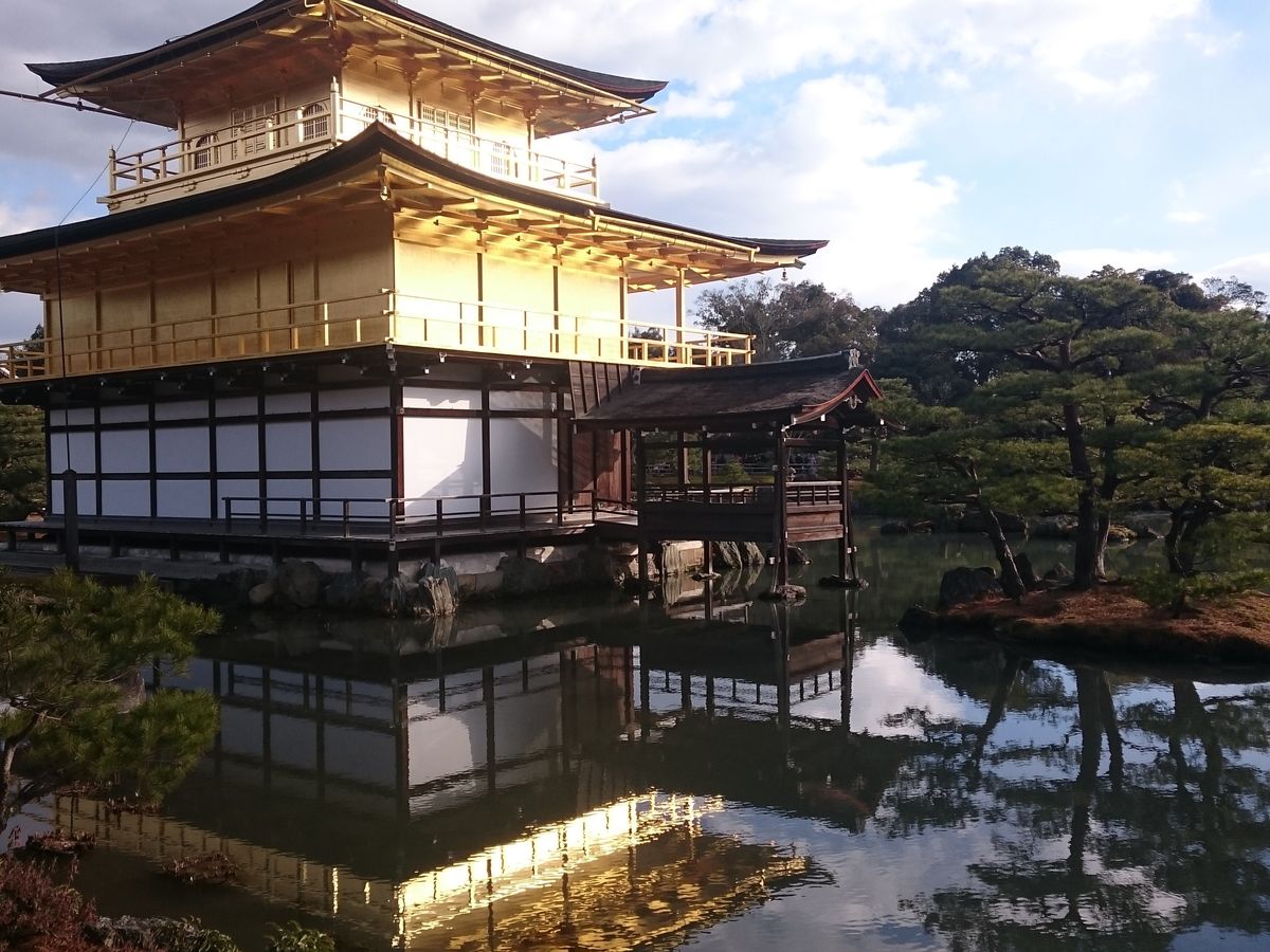 金閣寺では、僅かではありますが、お日様が照り光ったところと、チラホラと雪が舞っている金閣寺を見ることが出来てとても綺麗でした。