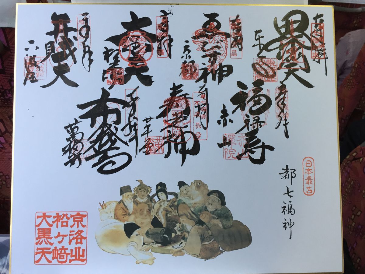 7日に、京都のえびす神社にお詣りしたした時、大きな色紙を持って御朱印をしてもらっている人たちを見かけ、七福神めぐりを