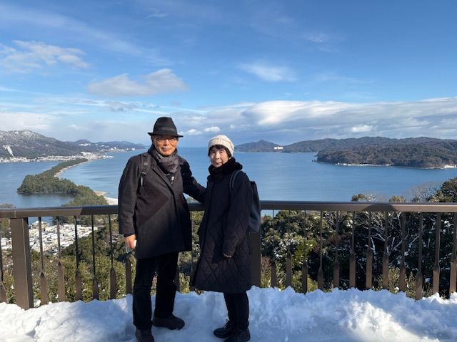 快晴で素晴らしい眺めでした。この後天橋立の浜辺を散策しました。伊根の舟屋では舟屋でコーヒーを飲みながら宿の雰囲気を味わい、伊根湾の遊覧を楽しみました。