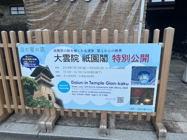 高台寺を訪問した際に気になった建物が大雲院 祇園閣でした。上までのぼれますが、ご近所のプライバシー保護のため写真撮影は禁止です。