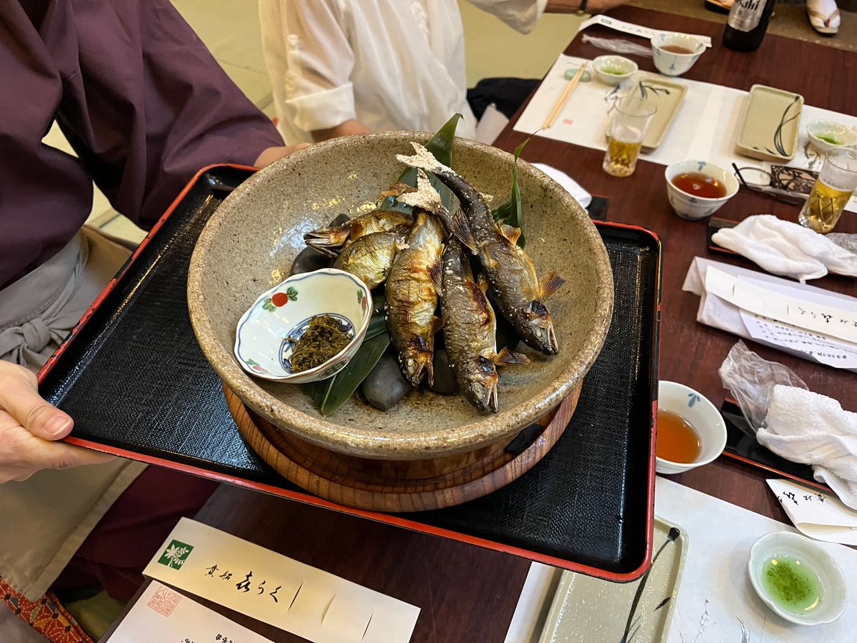 バスに乗り込み目指すは嵐山、食事は他のメニューから推察するに¥1,800程度、バスの往復、そして五山の送り火2つと灯籠流しは自分でご覧になってくださいというメニュー。観覧先があるわけでも食事処から景色が見られるわけでもなく河川敷や橋から混み合う中観覧。¥7,100支払ったが¥5,000程度の内容かと思われる。他県からの旅行者ならオプションで行くかもしれないが、京都に住んでいる人も利用するという事を考慮し適正価格でのプランをお願いしたい。