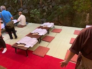 その後、閑臥庵へ移動して普茶料理をいただきました。ちょうど日も落ちてお庭がライトアップされていて、とてもきれいでした。普茶料理を初めて食べましたが、見た目もお味もとてもよかったです。三段重になっていてお腹いっぱいになりました。