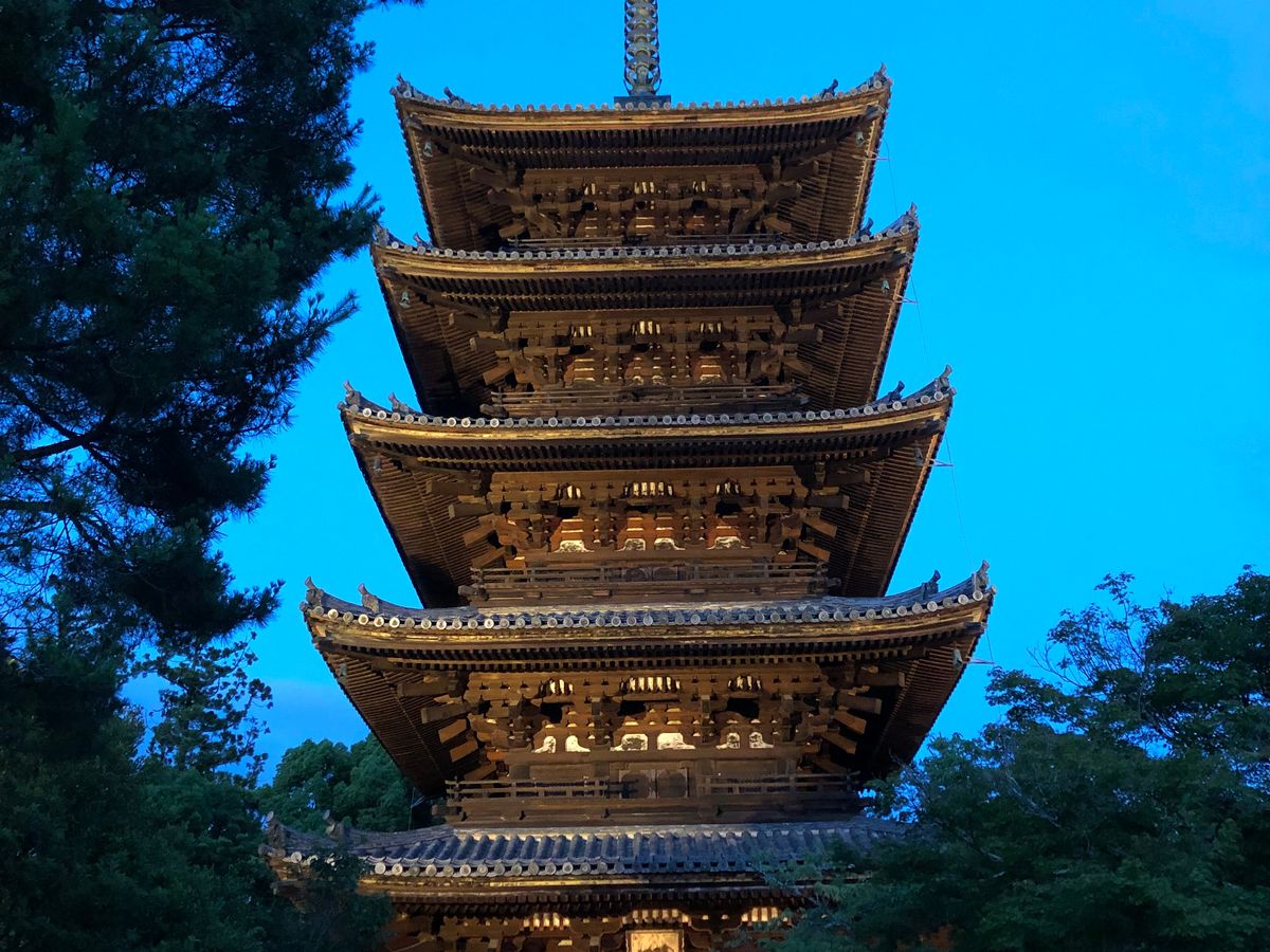 その後、仁和寺へ向かう途中のバスの中でのお坊さんの説明はとても分かり易く面白かったです。もちろん仁和寺のライトアップは言うまでもなくすばらしかったです。雨上がりでキラキラ輝いていました。見学者も少なく写真も撮り放題でした。