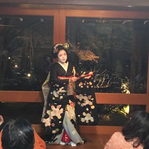 之前參加過另一項的藝妓體驗旅程,可惜時間倉促,無法好好感受.....這次換成純粹在旅館用餐,欣賞藝伎表演的方式,真的很享受!! 漂亮的庭院,好吃的餐點,藝妓---里春的表演,非常精彩,最後還可以排隊與藝妓照相,真的很典雅的體驗,父母也很開心可以欣賞的這樣富有京都文化的表演,很推薦有品味的人來試試看