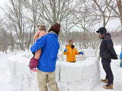 雪国ならではのモノづくり!イヌイット伝統の雪の家、イグルーをみんなで作ってみよう!ブロックのように四角く固めた雪をらせん状に組み立てていきましょう。できあがったイグルーは、中に入ってみることもできます。意外とあったかくて、帰りたくなくなっちゃう⁉