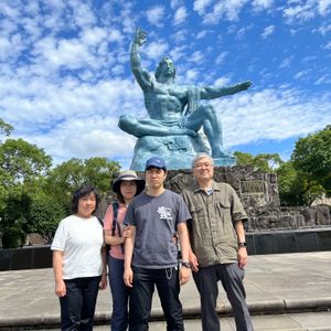 新幹線が、長崎到着遅れたのですが、連絡を頂き、家族4人ゆっくり観光できました。大きめの車で、最初に、眺めがよい展望台に案内して頂き、長崎周囲の地形を教わり、記念写真も撮って頂きました。原爆資料館や記念公園ほか回って頂き、天主堂、十字架のある墓碑、眼鏡橋など貴重な体験ができました。3時間が短いくらいでしたが、佐世保タクシー運転手の古賀さんの熱心さが伝わりました。美味しいちゃんぽんのお店やお土産のお菓子や麺のことも話してくれて、楽しかったでした。これからもよい企画お願いします。