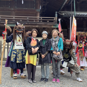 半年前の2時間ツアーで鬼ノ城に行った時は季節外れの台風のおかげで西門までで周辺のハイキングは断念していたため、今回は絶景を期待して行きました。鬼ノ城の前に寄った吉備津神社では偶然に鬼の皆さんと会えました。また前回が金曜日だったため開いていなかった御釜殿にも入ることができました。鬼ノ城は前日の雨によるぬかるみもほとんどなかったので、帰りの新幹線の時間を考慮して南門手前まで15分ほど歩くことにしました。期待通り、市街を見下ろしながら珍しい古代の山城の雰囲気を味わうことができました。