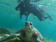 海の中で呼吸をするのが慣れるまで少し時間がかかりました😅 ガイドのしゅりちゃんの手助けで少しづつ潜り親子3人で仲良くピースしながら海亀さんと写真を撮る事が出来ました。 2匹の海亀さんに出会えてとてもラッキーでした。 最高の思い出になりました☺️