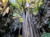常緑の木々に囲まれ気持ち良くウォーキング。谷底から首が痛くなるほど見上げるとガジュマルの木が触手のように根を伸ばしています。