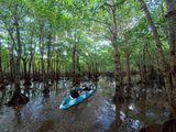 マングローブに囲まれた航路を進み