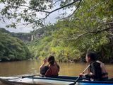 西表島上原港到着時は、小雨が降る生憎の天気でツアーはどうなる事やらと少し心配でしたが、インストラクターさんの明るい対応と別組の外国人の方の人柄でとても楽しいツアーとなりました。ベースキャンプからカヌー乗り場までのトレッキングでも周囲の植物の細かな説明は感銘しました。これぞ自然の宝庫東洋乃楽園西表島乃すばらしさを感じました。また、カヌー乗船では、初心者の私でもスムーズに乗れ、親切なご指導のおかげでカヌー乃面白さにハマってしまいました。カヌー下船から、サンガラの滝までの、マングローブジャングルトレッキングでは、普段目にする事のない動植物にほんとにここに来て良かったな思いました。ご準備いただいたお弁当もサンガラの滝上から美味しいいただきホントに楽しかったです。いつかは、来てみたい西表島でしたが、ホントに来て良かったです。またこのツアーでお会いできたインストラクターさん、別参加の🇨🇭の方、楽しいお話しをありがとうございました。またいつの日か、どこかでお会い出来る事を楽しみにしております。初老夫婦にお付き合い頂きありがとう😊。