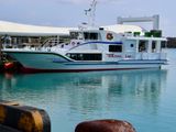 飛行機が久米島につく前、窓からエメラルドグリーンとブルーに分かれる海を見ました。このクルージングではその美しいグラデーションの海を船から堪能出来ます。はての浜の端まで船から眺め、干潮時に現れる不思議なシールガチ橋も通りました。船長さんには船から魚を見ることが出来るスポットに寄ってもらったり、ウミガメ、ウミヘビやトビウオを見せてもらったり。下船後には気さくな船長さんから久米島の色々な興味深いお話しも聞けました。