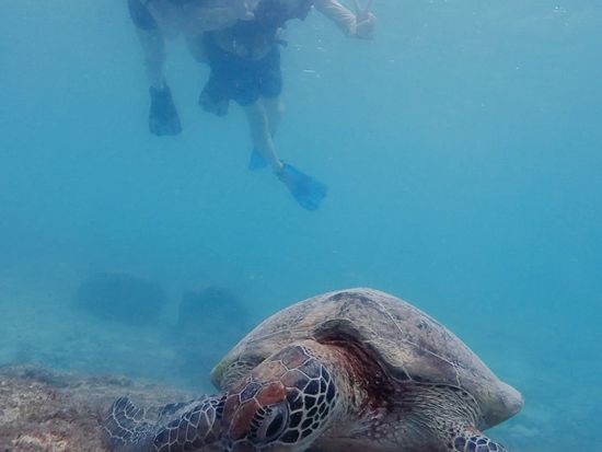海のコンディションで青の洞窟へは行けませんでしたが、代わりに大崎ビーチへ。 初めてのシュノーケリングで少し不安でしたが、ガイドのまさやさんはとても笑顔が素敵で優しいくサポートして下さいました。 ビーチへの車内でも色々観光案内をしてくれて、景色を楽しみながら過ごすことができました。 少し沖に行っただけで熱帯魚が見られて感動していると、すくにウミガメと遭遇! 間近で見ることができました。 珊瑚礁に色鮮