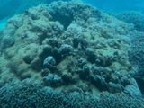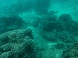 ガイドさんはウミガメ個体の性格も熟知しているようで、下の方にじっとしているウミガメを見つけて、人慣れしたウミガメなので待った方が良いとのことでしばらく待ち、上がってきたウミガメと併走して泳ぐ幸運に恵まれました。