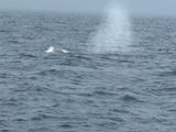 ママクジラの素晴らしいブリーチングの後、ベビークジラがそれを真似て練習していました。海上は肌寒くとも、心は温かさで満たされました。寄港を始めたら、ブロウで見送ってくれていました。その数分後に強烈な雨で、私たちはまるで泳いだ後のようになりました笑