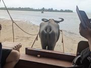 現地の西表島に着くと、バスで仲間川まで案内してくれます。バスの運転手さんはバスガイドのように西表島のことを話してくれて、非常に面白かったです! 仲間川に着いたら船に乗り換えて、のんびりガイドさんの説明を聞きながら仲間川を周遊します。マングローブは圧巻でした! その後、再びバスで移動した後、みらいくん(水牛さんの名前)の号車に案内されて、10人以上もの人を乗せて由布島まで連れて行ってくれました!あっ