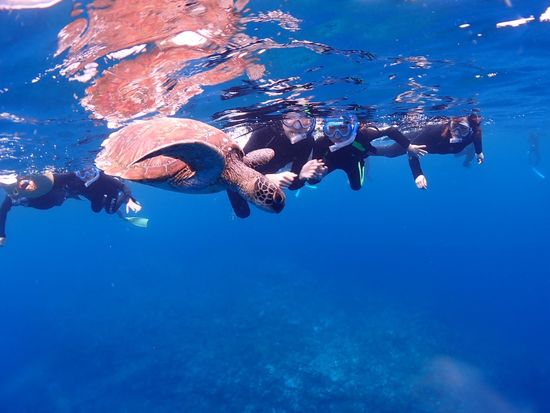 初めてのシュノーケリングでしたが、楽しくあっという間の体験でした!すごい海が綺麗で感動でした!しっかりシュノーケリングのレクチャーもしてもらい、泳いでる時も大丈夫かたくさん聞いてもらいました安心して参加出来ました。ウミガメにも会えて写真も沢山撮ってもらい大満足でした!!