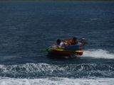 シュノーケルに、滑り台、高跳び台にブランコ、水上バイクに引っ張られてのバナナやビスケット、半日でクタクタに疲れます。