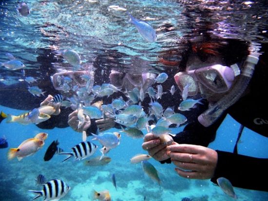 お魚と一緒に泳げるシュノーケリング体験、透明度抜群の海を堪能