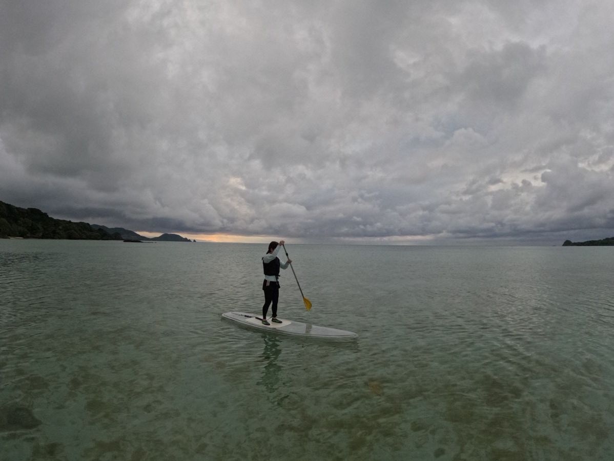 この時期は天候が変わりやすくサンセットが難しい日もありますが、その分ほぼ貸切のような海でゆったりSUPができるのも魅力のひとつです!