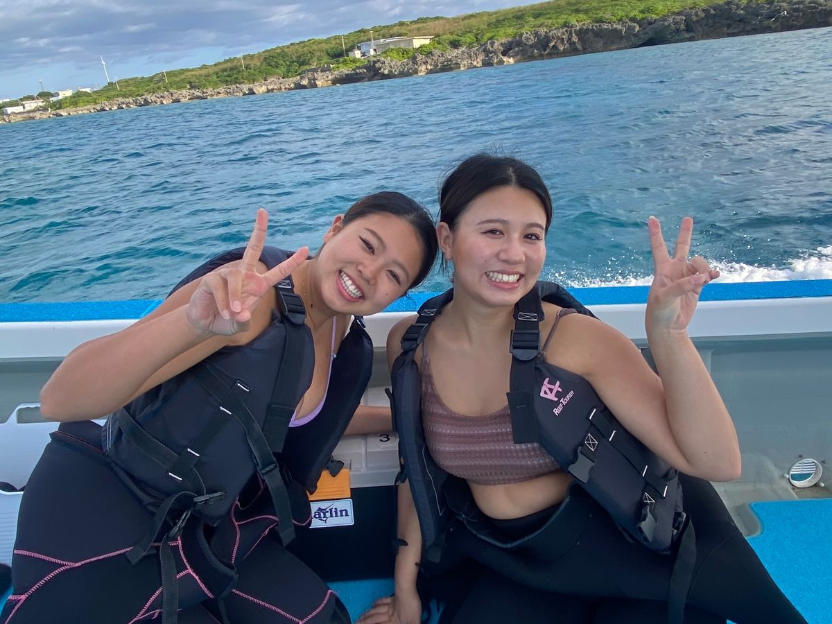 シュノーケリングをして船に戻ると寒さを感じましたが温めた海水をウェットスーツの中に入れてもらったり、温めた海水をバケツに入れてもらい足や手を暖められたのでよかったです。