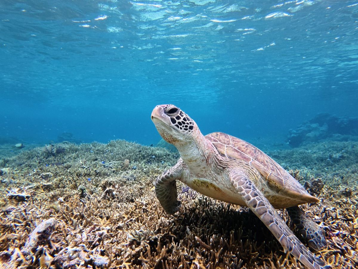 20年ぶりのシュノーケリングでした。寒さに弱く泳げないので不安だらけでしたが丁寧なリョウタさんの説明で慌てる事なく海に入れました。浅い場所に青ウミガメがご飯を食べていて海に入って数分で感動しました。 沢山写真も撮ってくれ大満足です。あっという間に怖さは忘れてもう少し深い海に先導してくれた光景は 普段知ることのない海の世界。テレビで観るのと違い本当に感激でした。リョウタさんありがとうございました。初老のカナヅチな私でもこんな貴重な体験が出来て感謝してます。 現地集合でトイレや更衣室が無いですが午後からまた違う行動が出来、時間も値段も感動も大満足です。