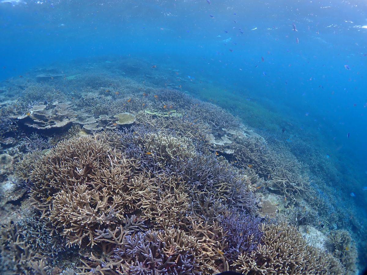 浅瀬と、珊瑚の先にある深い場所で海の色が変わることなども教えていただき、