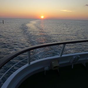 台風明けで昼まで欠航だったが、乗船の夜から運航になりラッキーだった。湾をまわるコースに変更にはなってしまったが、途中から湾の外も走ってくれてよかった。