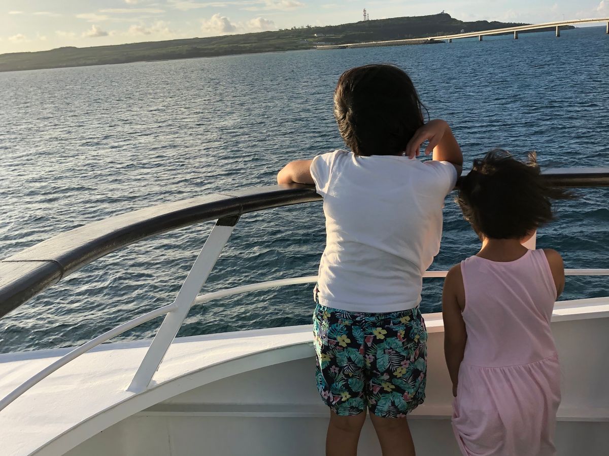 居酒屋で島唄ライブも見た最後の夜にこのクルーズに参加しましたが、とても素晴らしいライブでした。お食事も美味しく、デッキで夕陽を観たり、船底に移動して浅瀬の海底を見たり、最後はライブで踊ったりと盛り沢山な内容で楽しめました。もちろん伊良部大橋や海もしっかりと目に焼き付き、良い思い出ができました。