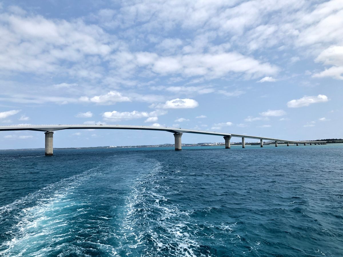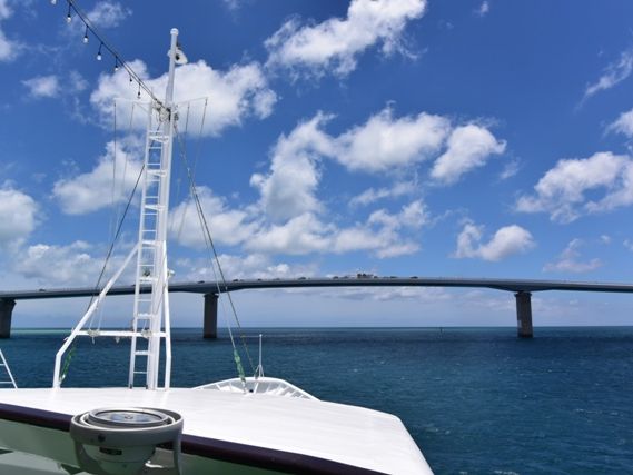 その後、ゆっくりと伊良部大橋に向かい、大橋をくぐるなど景観を存分に楽しめました。(池間大橋、伊良部大橋、来島大橋の3つを船上から見られます)