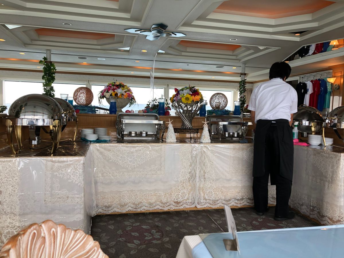 出航1時間前に集合し、停泊してる中バイキングがゆっくり食べれたのでとても良かったです。