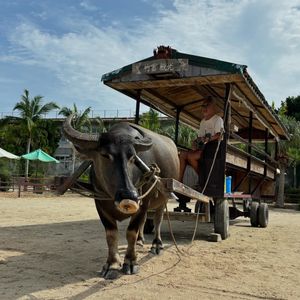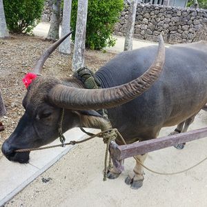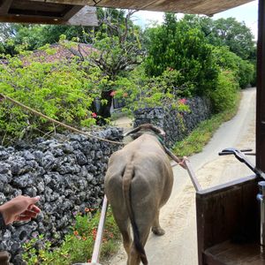 由布島と竹富島で水牛車に乗りましたが、水牛さんもそれぞれ個性があるようで、人間のように感情がわかって、係の人とのやりとりがとても可愛かったです。三線の生演奏を聴きながらゆっくり水牛車に乗れて、沖縄ならではのとても良い経験でした。