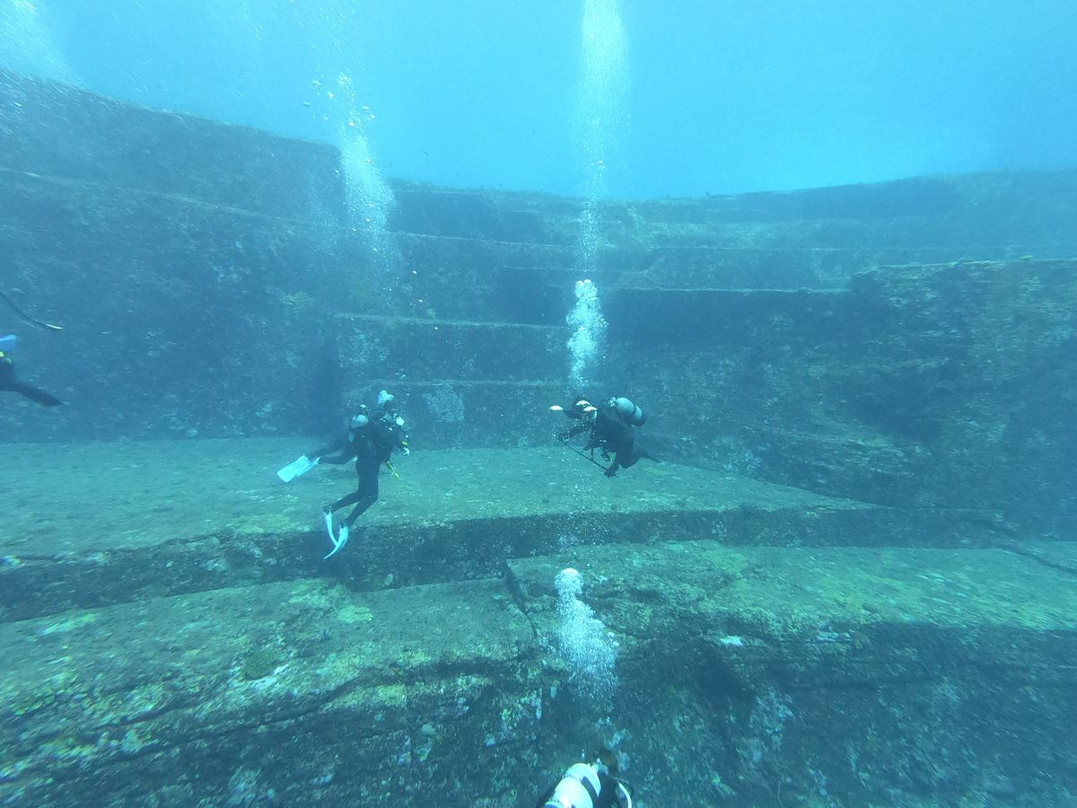 与那国島のダイビングと言えば、海底遺跡とダイナミックな地形。そのどちらも見ることが出来ました。前日の情報だと海底遺跡は波の関係で難しいかもと言われていましたが、当日になって行けるようになりました。