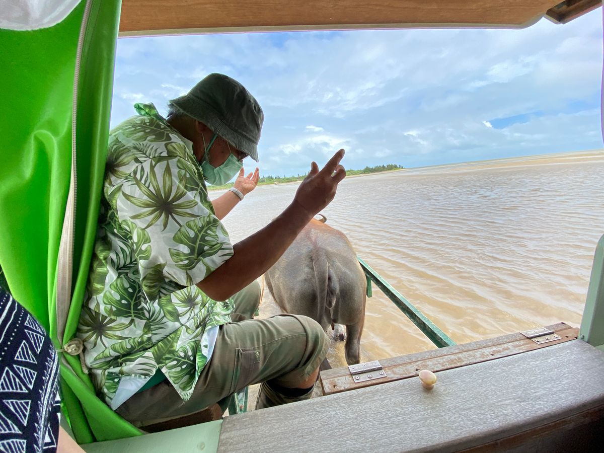 川と森と畑に囲まれた一本道でしたが、運転手兼ガイドさんがとても面白い方で、西表島のトリビアを盛り込んだ解説をしながら由布島に連れて行ってくださいました。