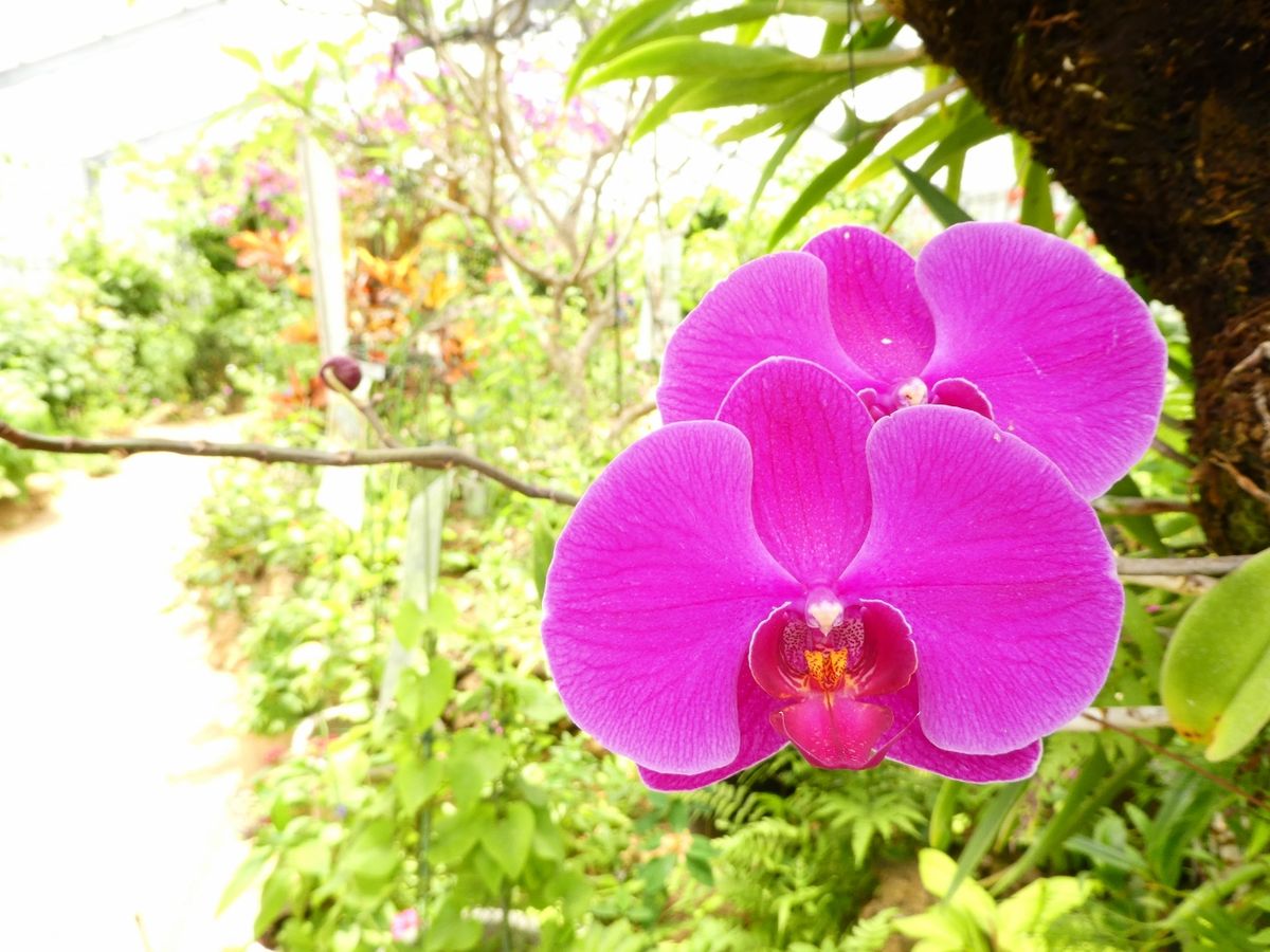 水牛車が10台以上いてビックリ!GW明けの週末でしたがお客様がけっこういて、数台でのんびりかと思いきや団体で次々渡る様にビックリ。ですがのんびりサンシンの音を聴きながら10分ほどで由布島へ到着。島は色とりどりの花や熱帯の植物に囲まれてとても暑いです。水分と日傘は必携です。水牛も島では頭だけ池から出して涼んでいます。花や緑を見るのが好きで散策が好きだったり、写真を撮るのが好きだと楽しめると思います。そうでない方は暑くて歩かないといけないし退屈かも…?蝶々のハウスでは沢山の蝶が舞っていて、なかなか撮れない写真も撮りやすいです。のんびりゆったり見るのが良いので、時間に余裕がある方は満喫出来ると思います。