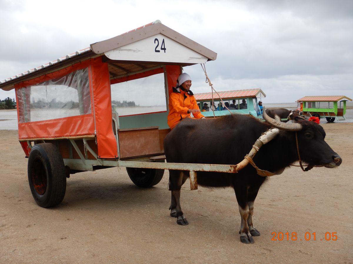 竹富島の水牛車もいいですが、海を渡るこちらの水牛車も独特のもの。