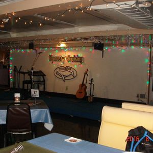 サンセットクルーズという表題でしたが、あいにく曇り空。よって日没は見ることはできなかった。しかし、船内でミュージシャンが生歌を披露してくれていたので、窓辺の席でしたが、外を眺めることのクルーズタイムよりも2回のプレイタイムは楽しかった。