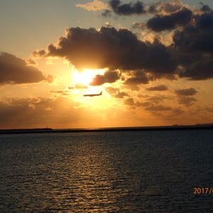 那覇空港に近いせいか飛行機もサンセットを横切り飛んでてロマンチックです。
