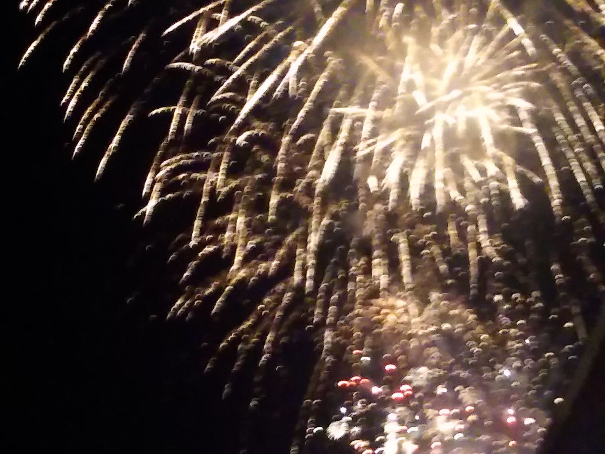 料理はバイキングなのでまずまず、ビールを飲みながら夜風に吹かれて、船上のため建物に邪魔されずに花火が見られたので良かったです。