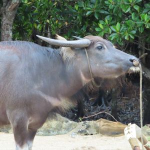 また、海を渡る水牛もただ乗車するだけでなく、乗車の間に水牛や由布島の話し、三線を弾いて歌ってくれて大変楽しめます。
