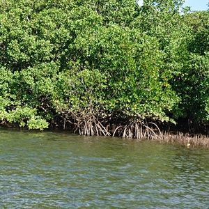 1番に乗り込んだので、船頭兼ガイドさんに座る席は右か左どちらが良いか聞いたら、「どちらも同じ。帰りは折り返すので。出航まで日の当たらない左が良いのでは?」と言われて左に座った。往き、右側をマングローブに近寄りながら丁寧に説明していらっしゃったが、帰りは潮の加減か、真ん中をただ帰るだけだった。説明を聴きながら近くで見ることができず、残念というしかない。最初のアナウンス通り、同じように左も近寄るべきではないですか?