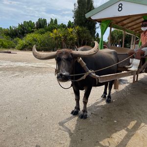 由布島までの移動手段の水牛車はとてもよかったです。水牛がかわいい♪たくさん写真を撮っちゃいました。また、またまた乗車した水牛車は水牛車乗りの人というんでしょうか?その方が三線で歌を歌ってくださり、貴重な体験でした。
