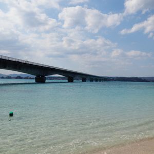叀宇利島はビヌチから芋る景色も橋の䞊から芋る景色も矎しいですよね暖かい時期にいらした際は、ぜひ、少しだけでも脚を぀けおいっおください。