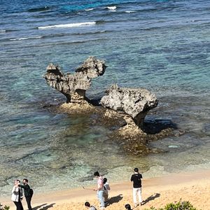 平和記念公園、海中道路、沖縄科学技術大学院大学などリクエストしていました。2月は潮が引いている時期ということで、海中道路ではなくお勧めの海岸に連れて行っていただきました。